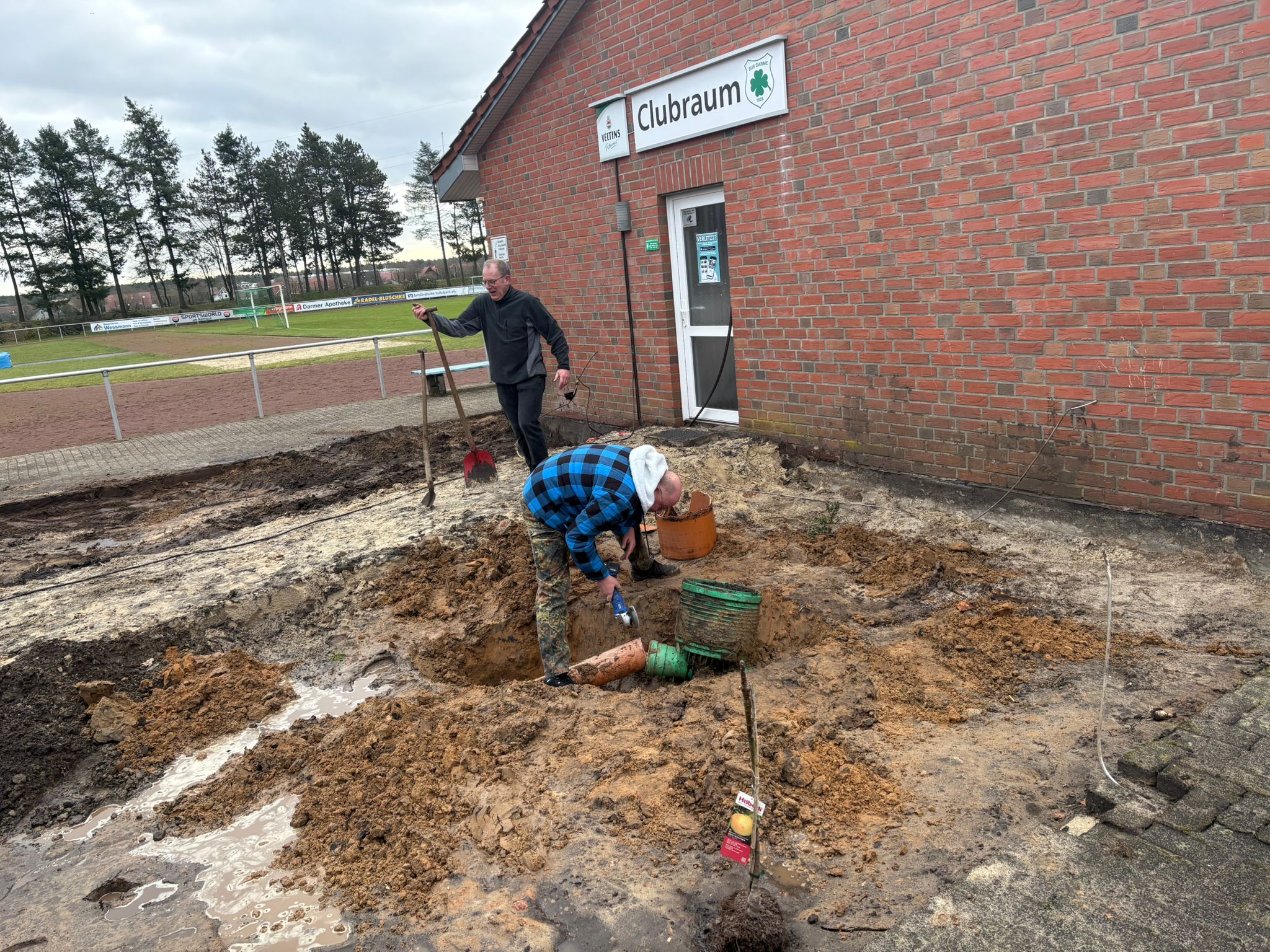 In Zusammenarbeit mit Friedhelm Diek, unseren Platzwarten und dem Vorstand des SuS Darme sind nun die ersten Arbeiten zur Neugestaltung des Eingangsbereiches zum Clubraum im Sportzenrtrum Darme angelaufen.